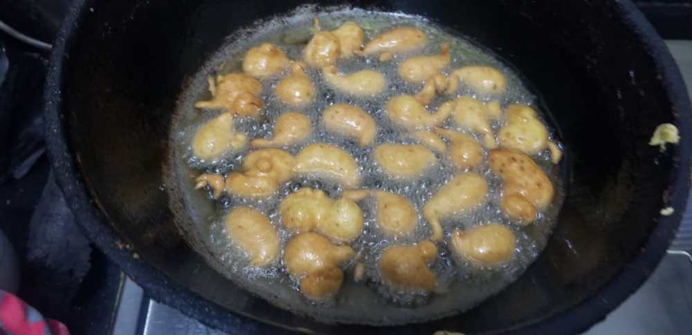 - Heat oil in a wok. The oil should be about 1 ½ inches deep. If oil is not deep enough the phulki will flatten in shape.